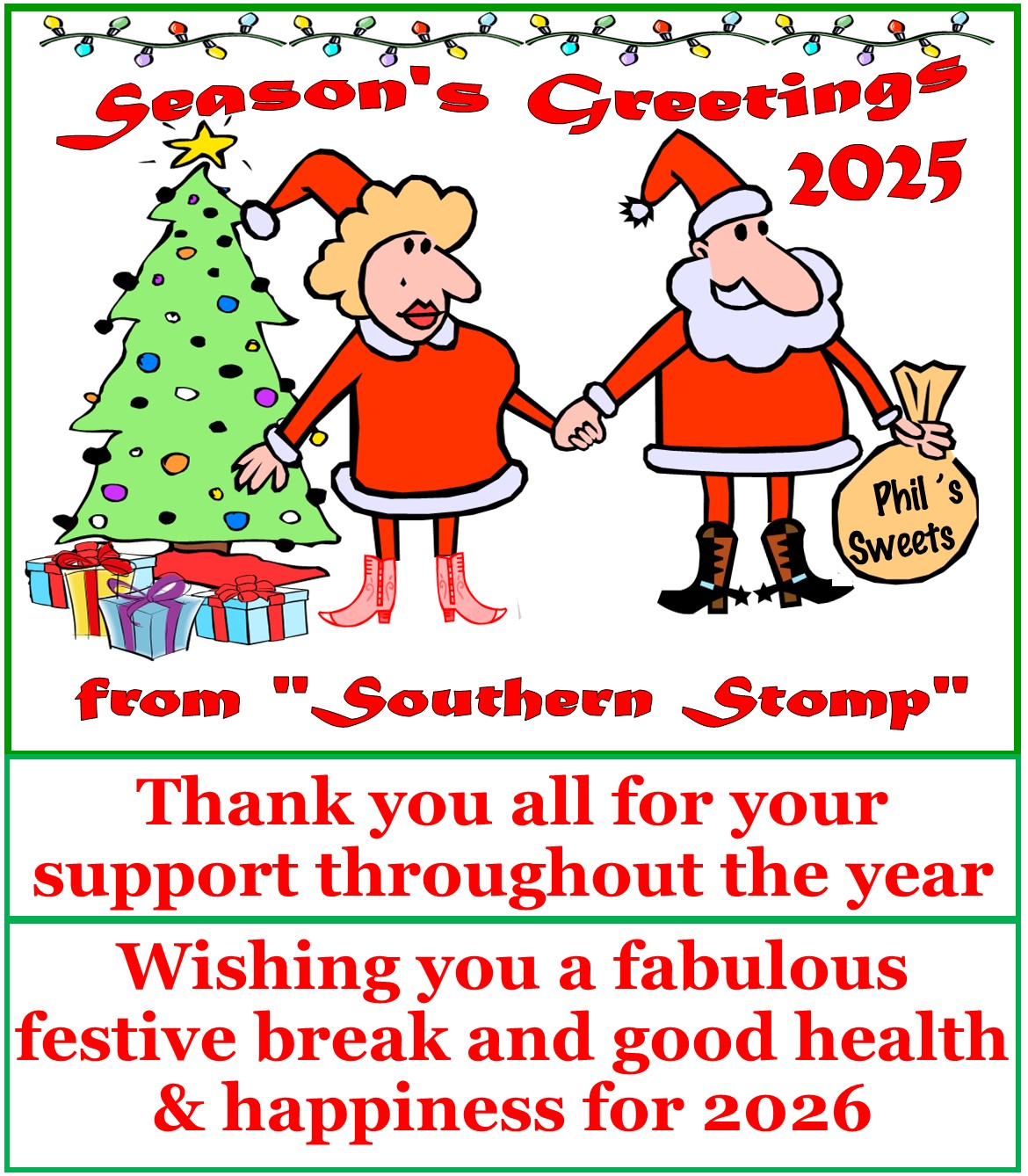 Welcome to “Southern Stomp” Line Dance Club Last updated 20th Dec. '25 [Established 1995] We celebrate our 30th Year as "Southern Stomp" Line Dance Club ~ thank you to everyone who has supported us; some are sadly missed, others now join us for the events and trips having hung up their dance shoes, but all our classes are busy and you continue to support us come rain or shine... many of you have become firm friends and we thank and wish you all the very best. ...the "Southern Stomp" media team... and our Editor in Chief Teddy has updated our Website for Dec. 2025. . …as always a BIG Thank You to everyone for your support throughout the years, it would not be the great fun Club that “Southern Stomp” Line Dance Club has become… Please Remember: If you’re on your own and in need of something collecting or just need to talk – we’re a line dance club and community – just ask… ‘learning the odd dance is just part of what we do’… our details/ contact numbers are on the Contact Page: Best wishes to your respective families (and friends) in 2025 ~ Love Phil & Joy T T T T T